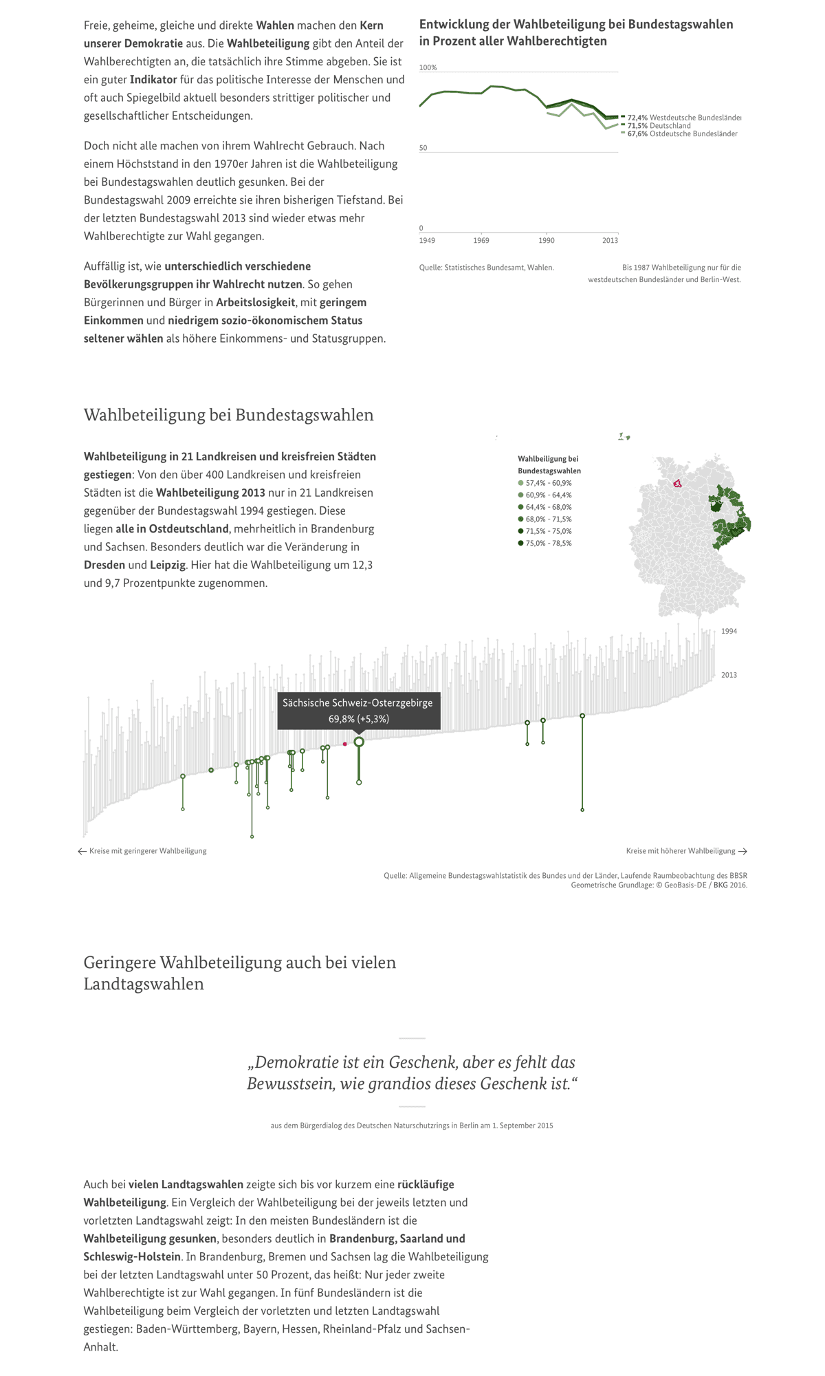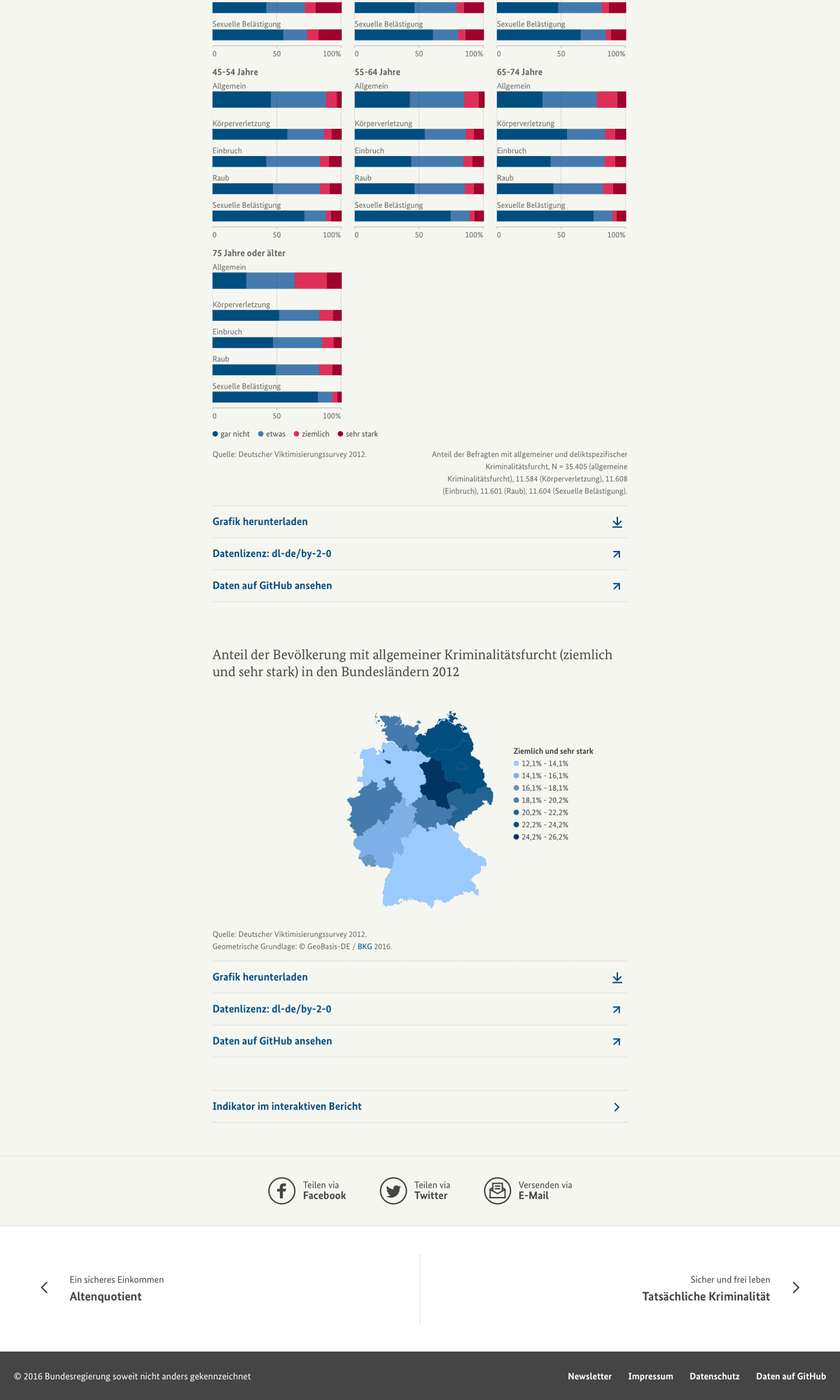 The Federal Government values accessibility and inclusiveness of their web content above everything else. Adhering to the WCAG 2.0 guidelines was a strong requirement from the very beginning of the project and influenced the design process as well as the final experience of the report in a lasting way.